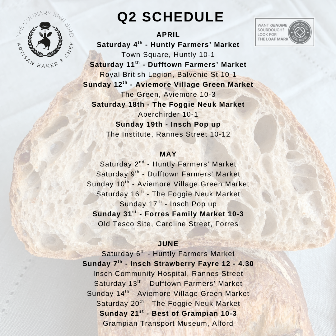 If you would like to be the first to know each week what I’m baking and where I’m selling from, then please sign up to my mailing list. Just send an email to theculinarykiwibird@gmail.com with your full name asking to be added to the list. Each Monday (sometimes a Sunday, but always before social media posts are put up) you’ll receive an email from me.